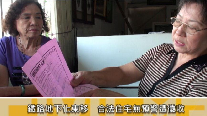 台南鐵路地下化工程,原訂現有鐵道地下化,2010 年9 月 交通部長毛治國參加說明會,也強調地下化工程東移只是假設情況,但由於居民反對,決定原路線施工。但今年八月,市政府無預警擴大徵收台南市區旁精華地段,四百多戶居民只接到通知書,告知自家土地將被徵收。